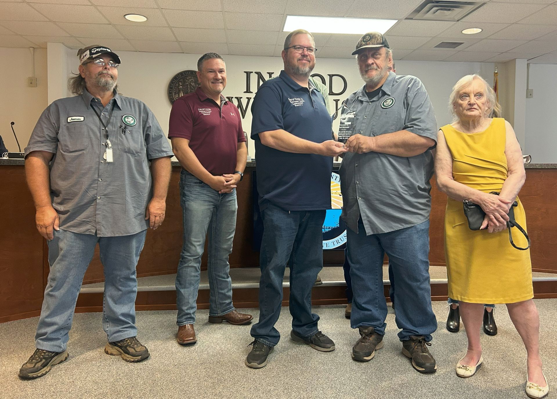 Fred McSwain was recognized by members of the Washington County Board of County Commissioners during their August 21 regular session as they presented him with a plaque in honor of his retirement. McSwain retired from his role with the Washington County Recycling Center in July after 19 years of service.