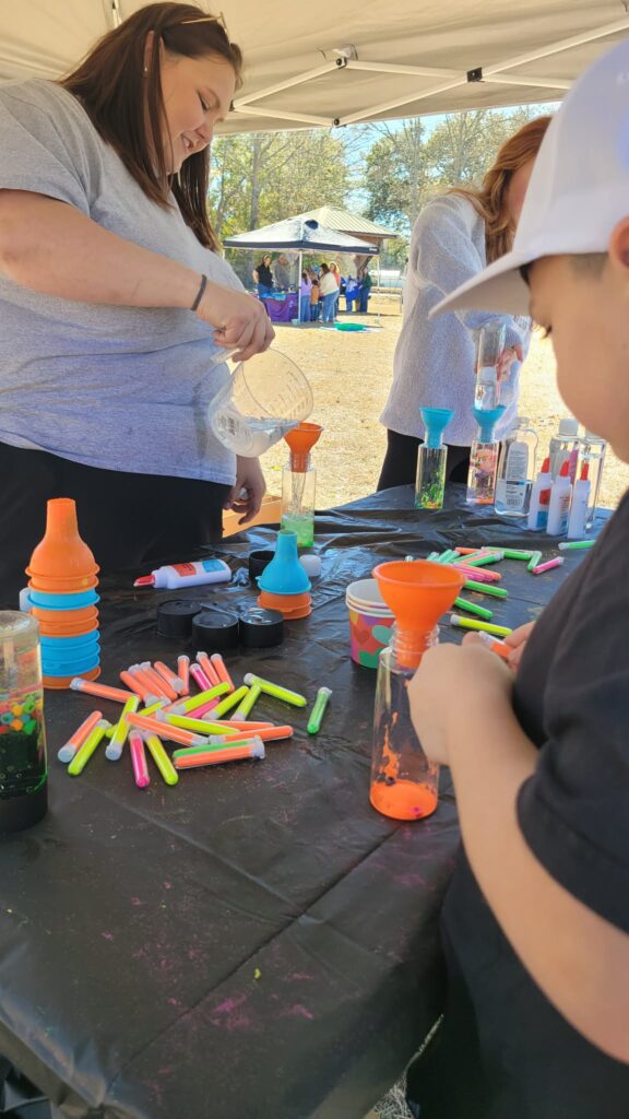 Early Learning Coalition staff assist youth attendees with making sensory bottles, one of the many arts and crafts activities during the event. [AMBER PATINO | The News]