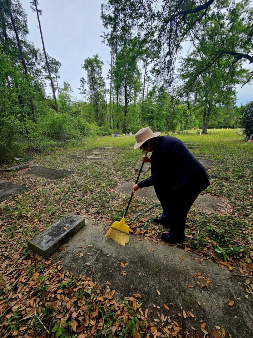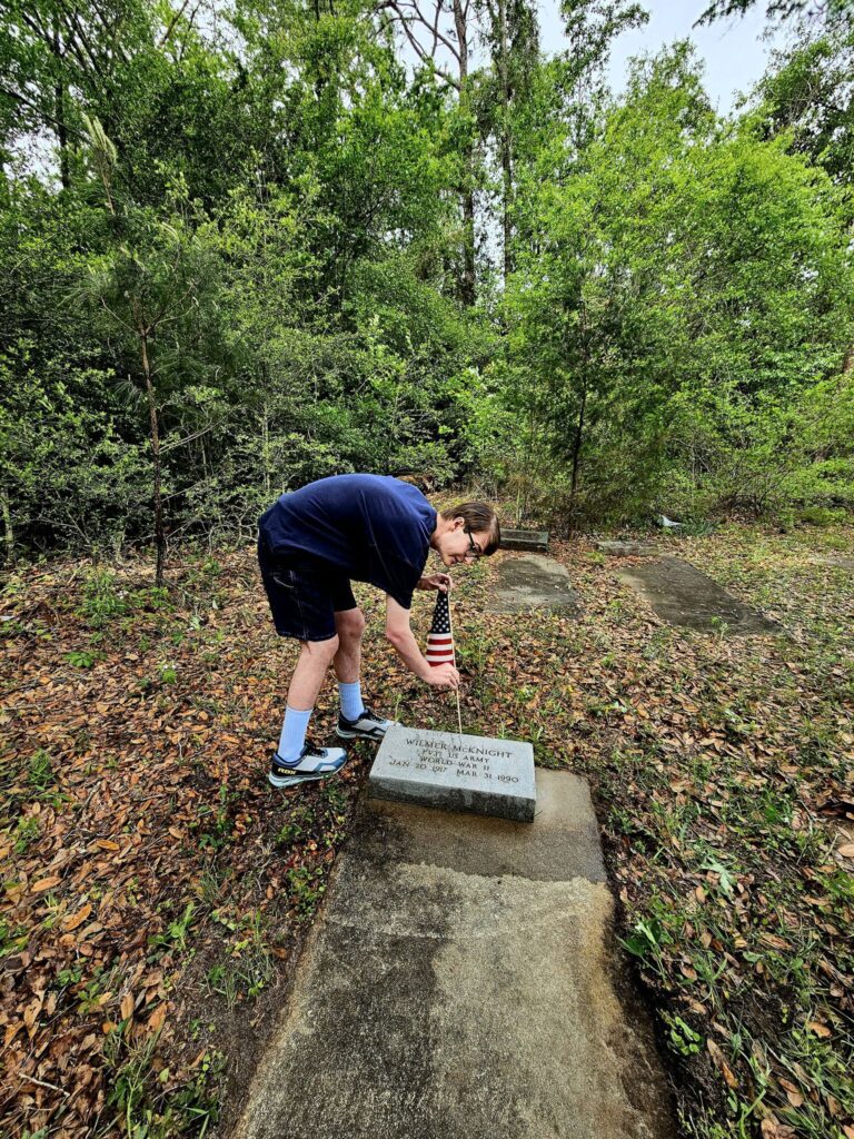 The group visited a local cemetery where they cleaned headstones and restored the appearance of veterans’ final resting places.