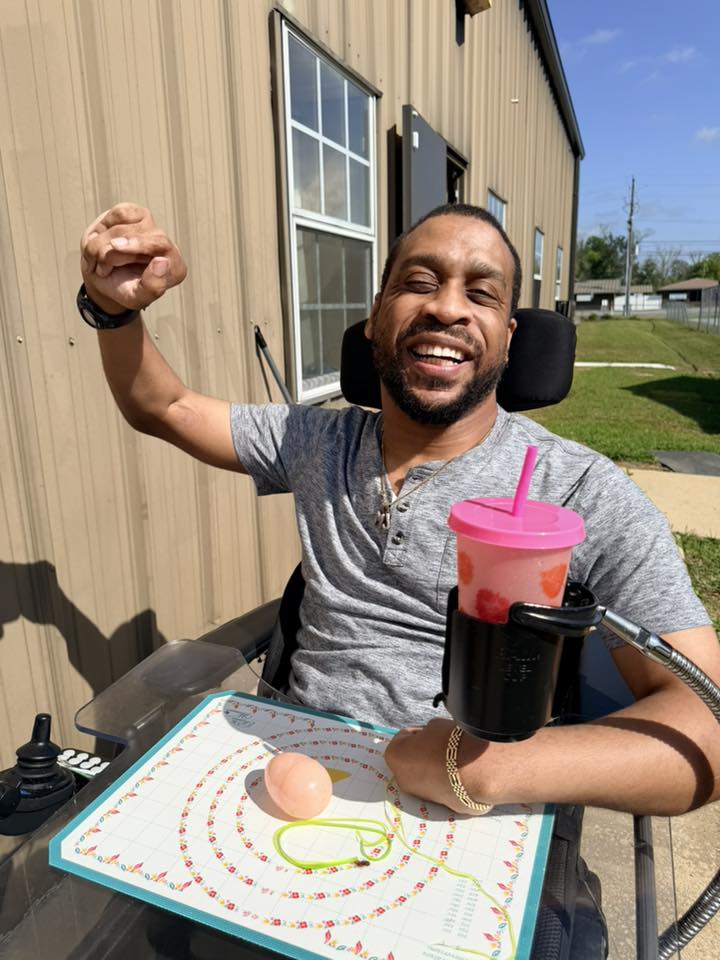A consumer from The Arc of Washington-Holmes Counties smiles while showing off an Easter egg during last week’s celebration. [CONTRIBUTED]
