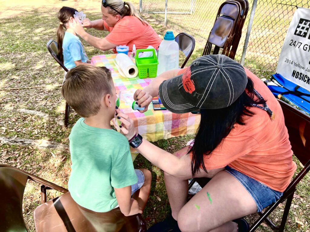 Youth attendees enjoy getting their faces painted by volunteers from Grace Assembly Church during the 2026 Vernon Community Egg Hunt. [ALI MORELAND | The News]