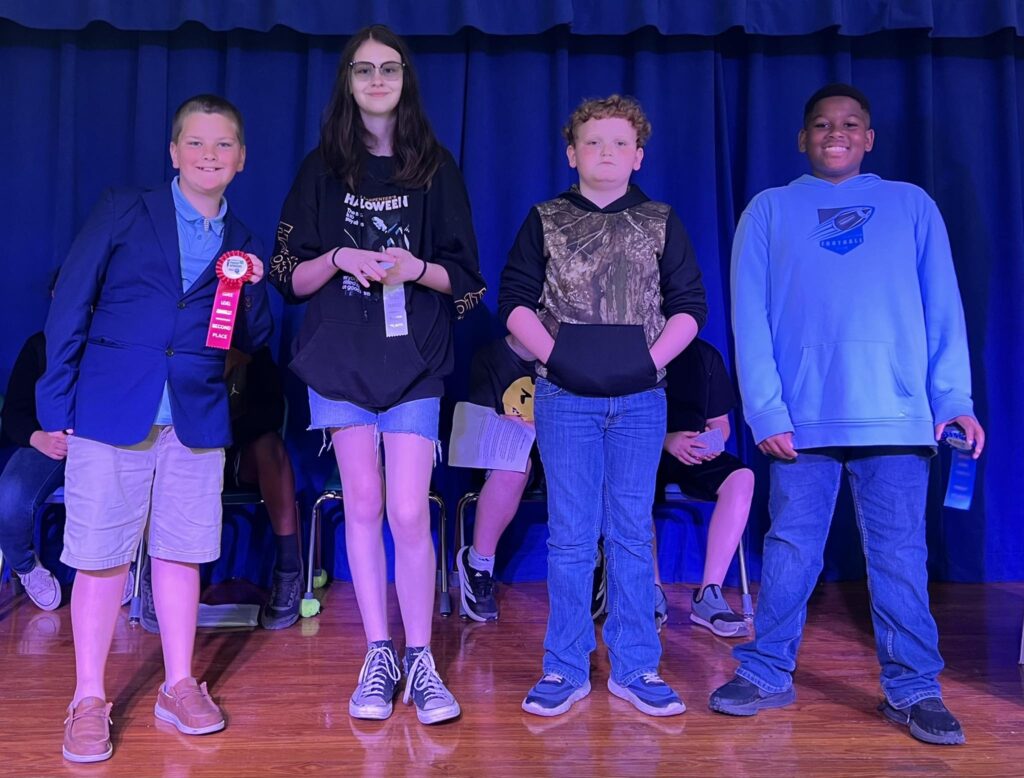 In the 6th grade division, Kathryn Sewell placed first, followed by Avielle Brock in second and Peyton Coatney in third. Shapira Nettles was named alternate.